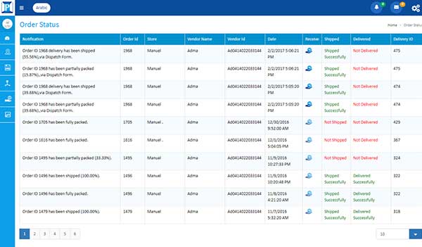 Die Auftragsverwaltungsplattform dient zum Aufgeben von Bestellungen von Vertriebsmitarbeitern oder direkt durch die Filialen, zum Auflisten von Bestellungen filialweise, zur Verfolgung der Lieferung und des Versands mit verschiedenen Status, Teillieferungen können auch für Artikel durchgeführt werden.